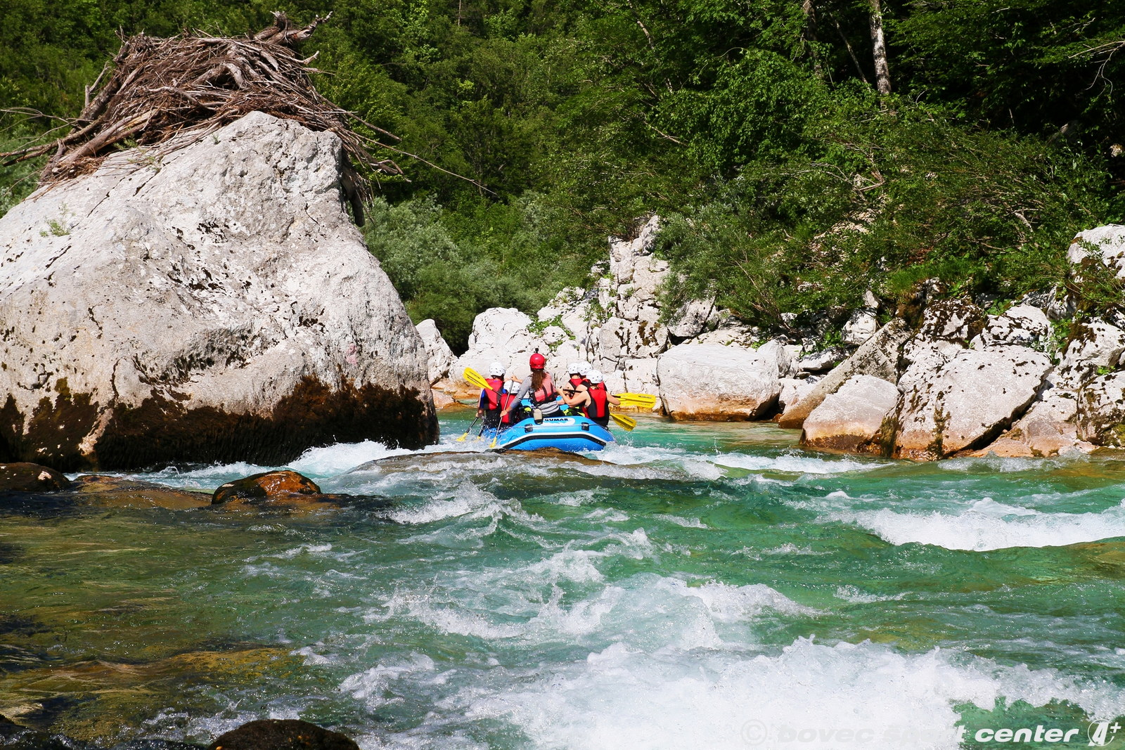 The Soča will allow us to enjoy relaxing views in some sections, while in other parts we will have to paddle more and overcome wild rapids together.